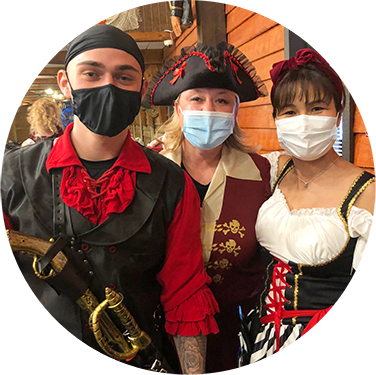 The crew at Pirate’s Table Calabash Seafood Buffet in Surfside Beach is excited for the upcoming 2021 season for many reasons. First of course we are thrilled that a Covid-19 vaccine is available! However, while our crew has started getting vaccinated, we are still wearing masks and providing disposable gloves to use while in the buffet line. We have disposable masks available at the hostess stand for any guest who wants one.